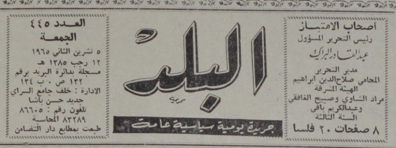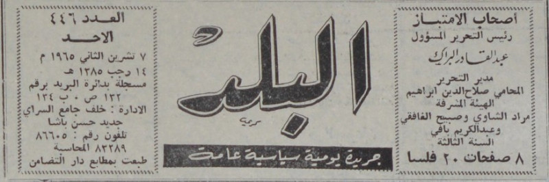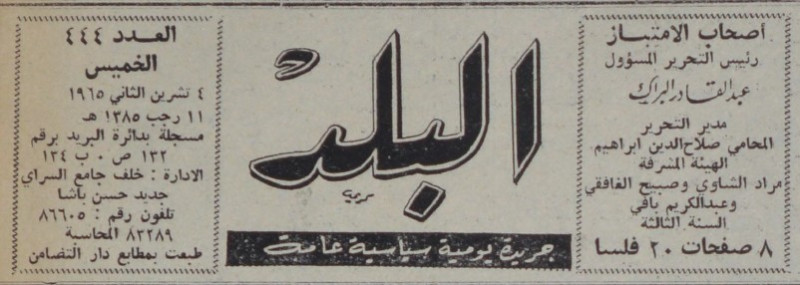 رئيس التحرير المسؤول : عبد القادر البراك.