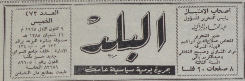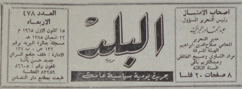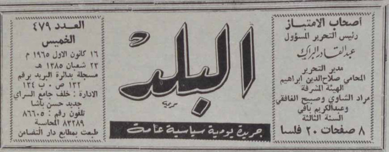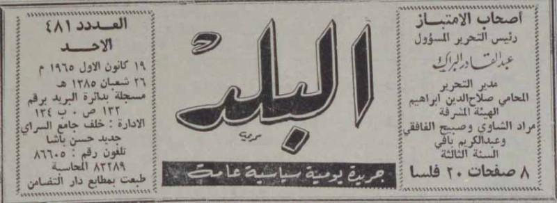 رئيس التحرير المسؤول : عبد القادر البراك.