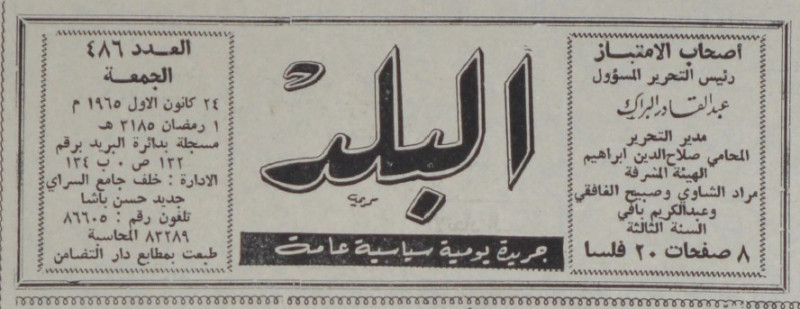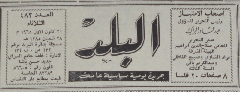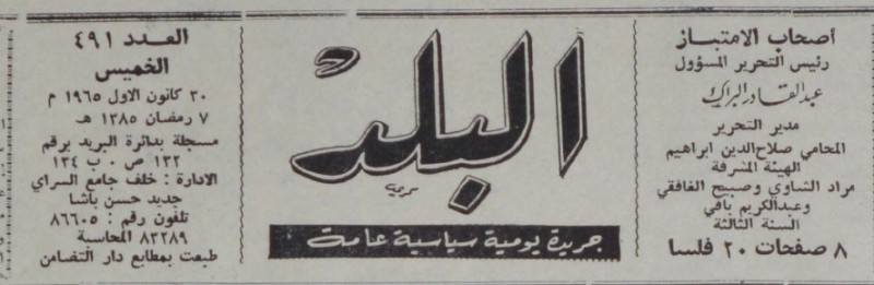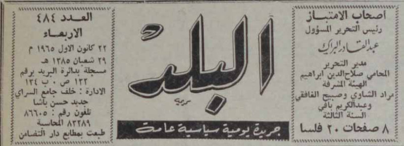 رئيس التحرير المسؤول : عبد القادر البراك.