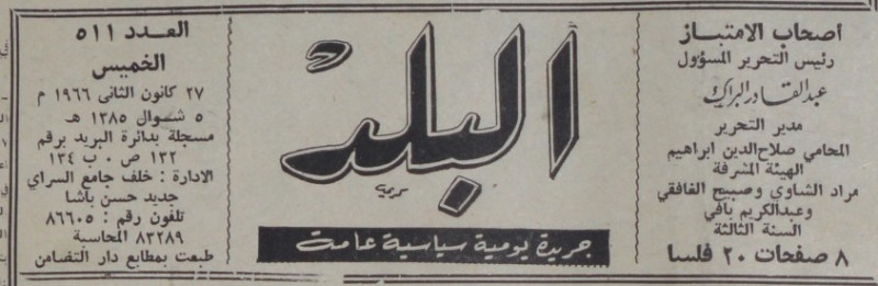 رئيس التحرير المسؤول : عبد القادر البراك.