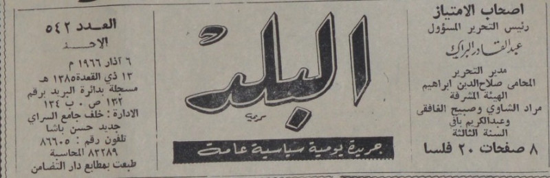 رئيس التحرير المسؤول : عبد القادر البراك.