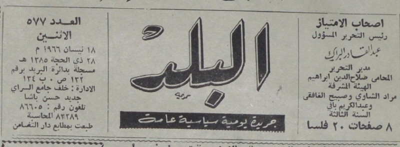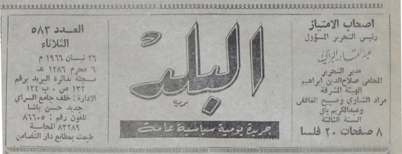 رئيس التحرير المسؤول : عبد القادر البراك.
