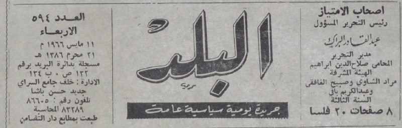 رئيس التحرير المسؤول : عبد القادر البراك.