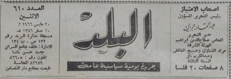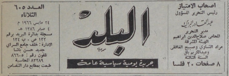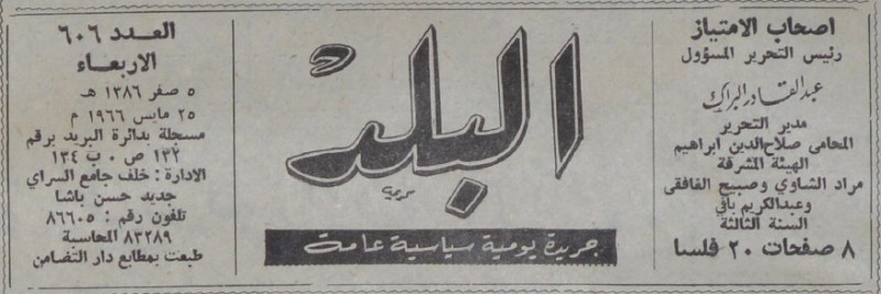 رئيس التحرير المسؤول : عبد القادر البراك.