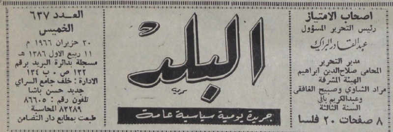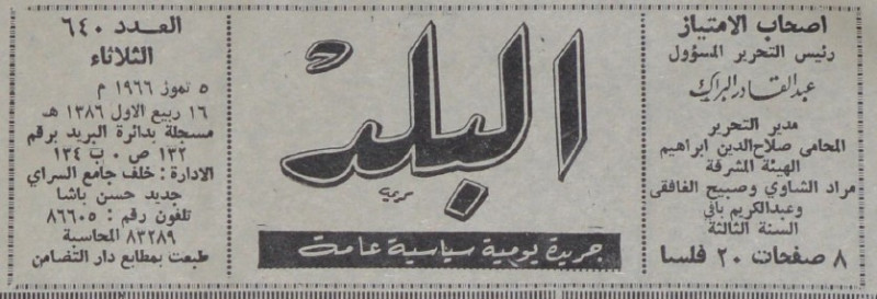 رئيس التحرير المسؤول : عبد القادر البراك.