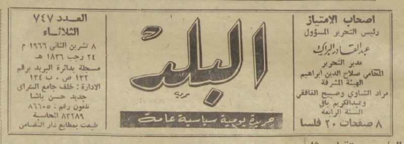 رئيس التحرير المسؤول : عبد القادر البراك.