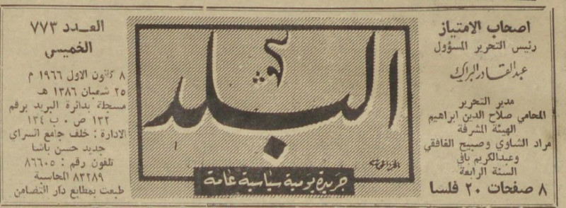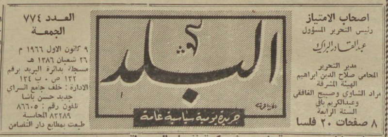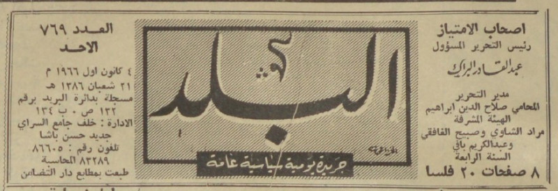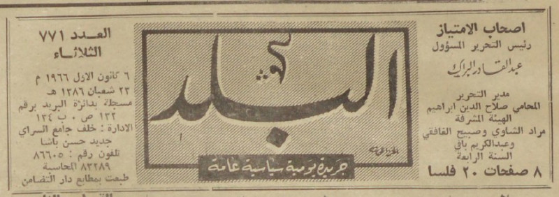 رئيس التحرير المسؤول : عبد القادر البراك.