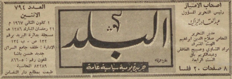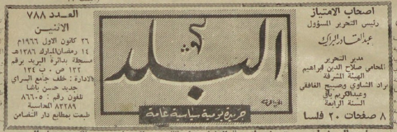 رئيس التحرير المسؤول : عبد القادر البراك.