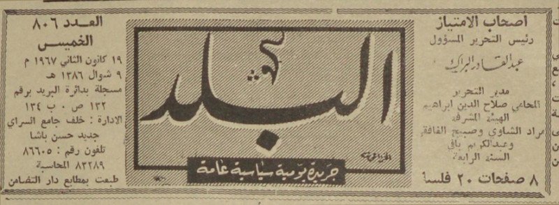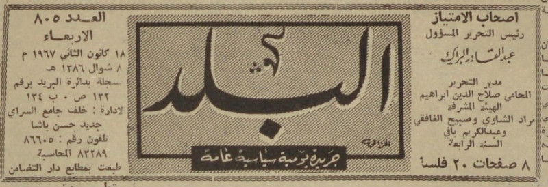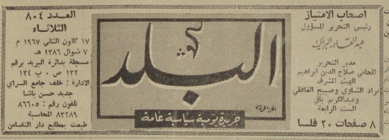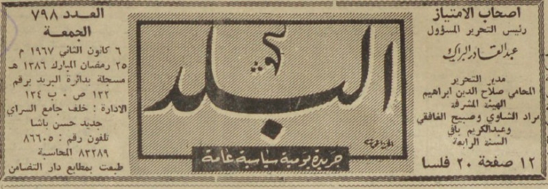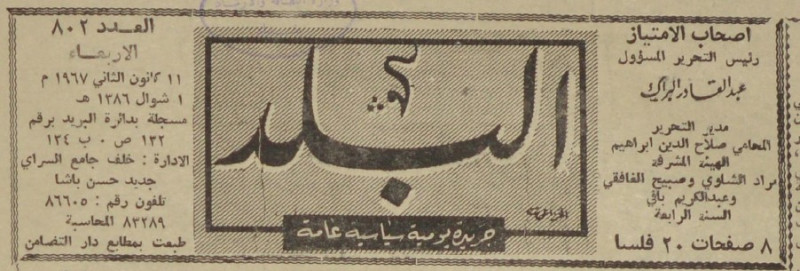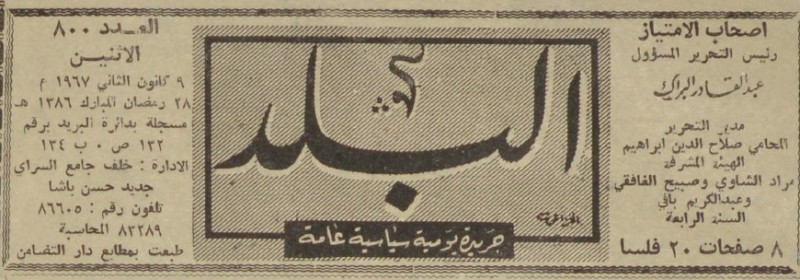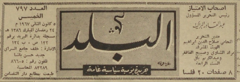 رئيس التحرير المسؤول : عبد القادر البراك.