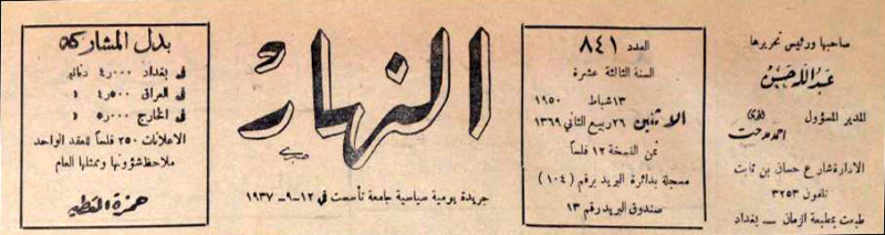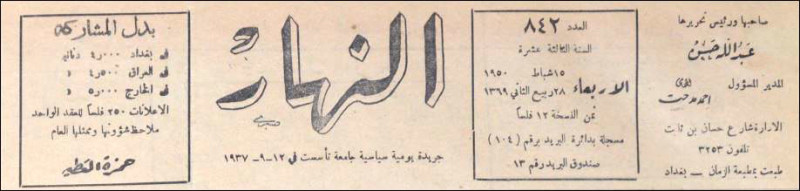 النهار (جريدة : بغداد، العراق : 1937)