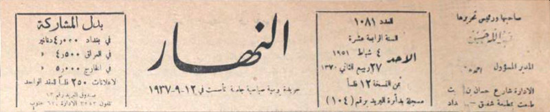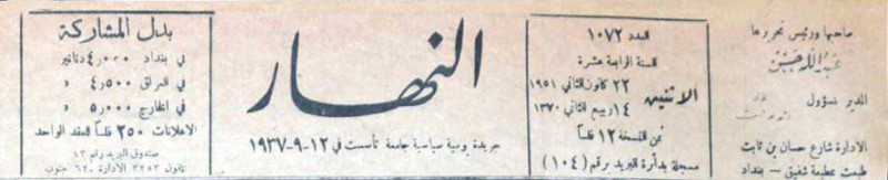 العدد 16، السنة 1 (26 تشرين الثاني 1937)