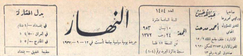 النهار (جريدة : بغداد، العراق : 1937)