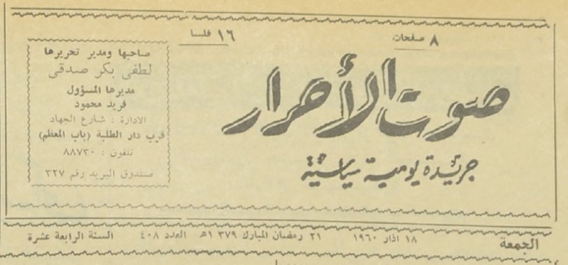 جريدة يومية سياسية جامعة : لسان حال حزب الاحرار.