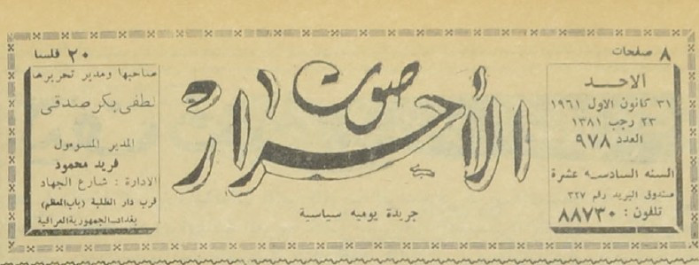 جريدة يومية سياسية جامعة : لسان حال حزب الاحرار.