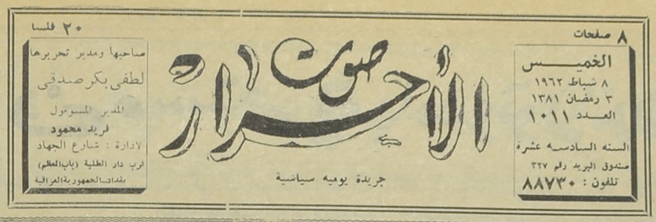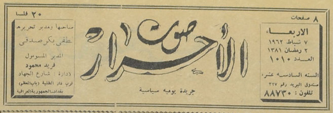 جريدة يومية سياسية جامعة : لسان حال حزب الاحرار.