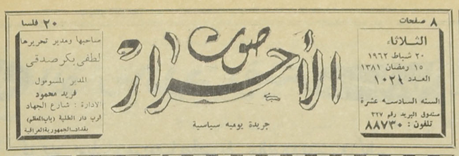 صاحبها ومدير تحريرها : لطفي بكر صدقي.