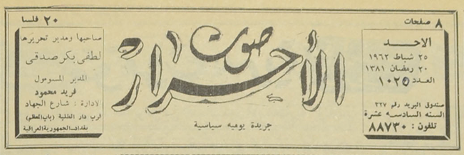 جريدة يومية سياسية جامعة : لسان حال حزب الاحرار.