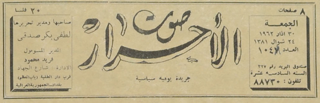صاحبها ومدير تحريرها : لطفي بكر صدقي.