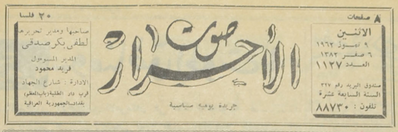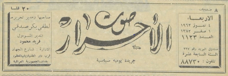 صاحبها ومدير تحريرها : لطفي بكر صدقي.