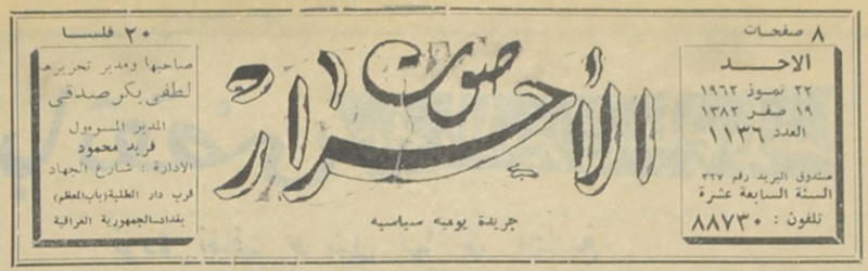 صاحبها ومدير تحريرها : لطفي بكر صدقي.
