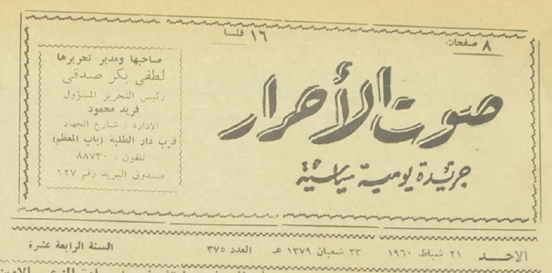 جريدة يومية سياسية جامعة : لسان حال حزب الاحرار.