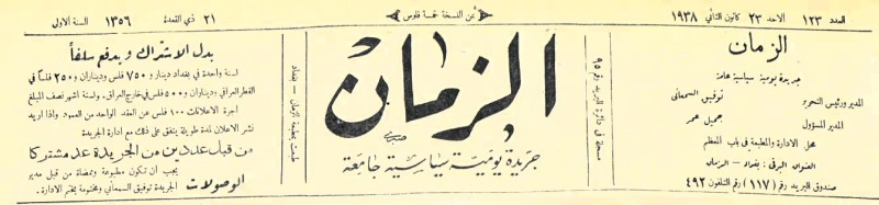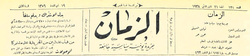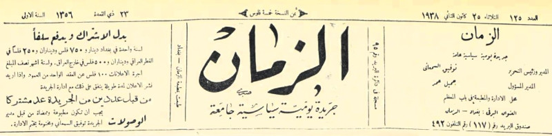 الزمان (جريدة : بغداد، العراق : 1937)