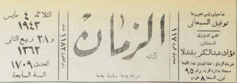 الزمان (جريدة : بغداد، العراق : 1937)