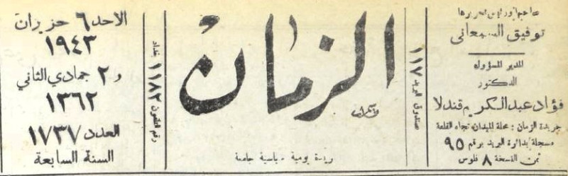 الزمان (جريدة : بغداد، العراق : 1937)