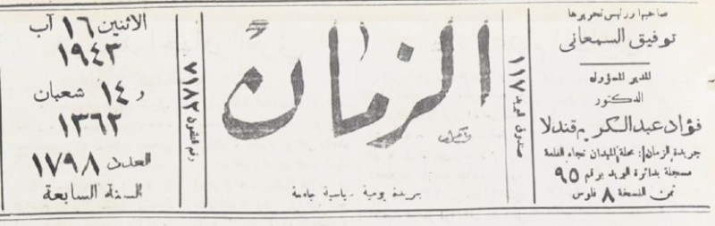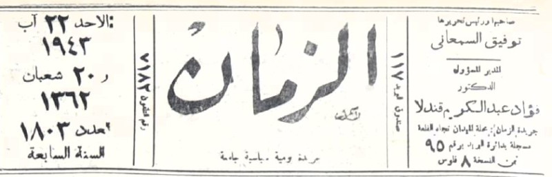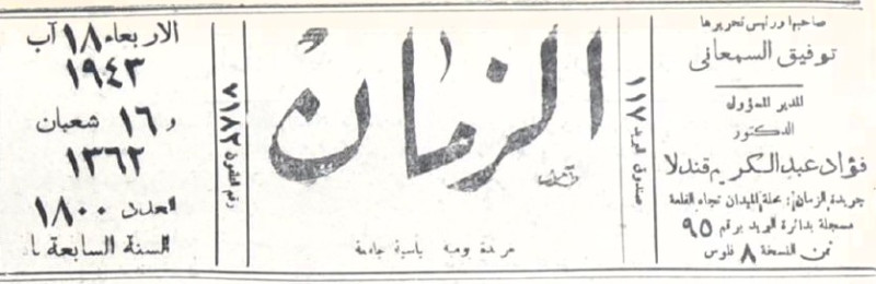 الزمان (جريدة : بغداد، العراق : 1937)