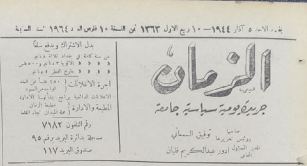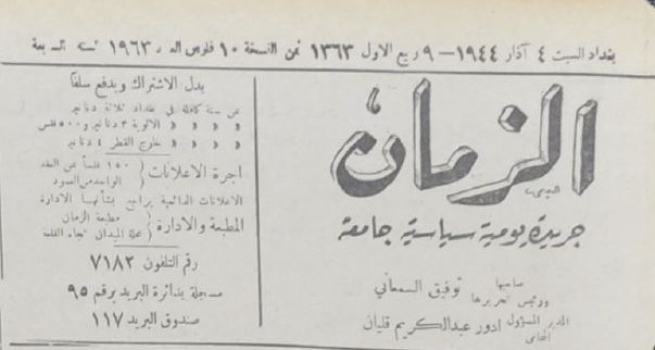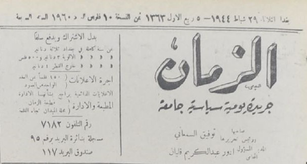 الزمان (جريدة : بغداد، العراق : 1937)