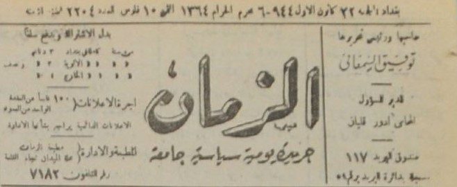 الزمان (جريدة : بغداد، العراق : 1937)