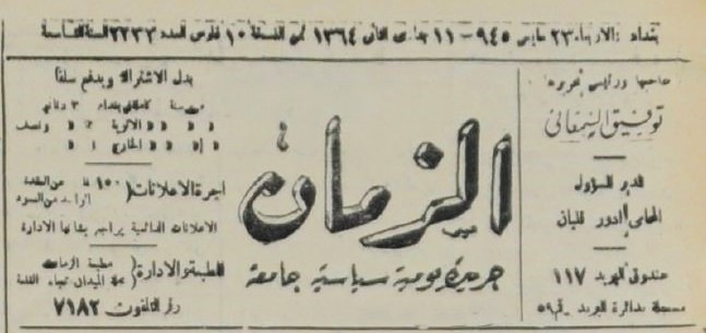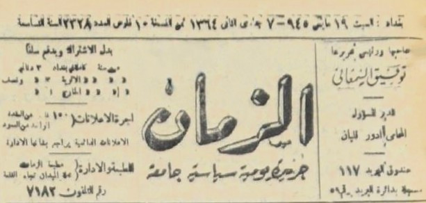 صاحبها ومدير تحريرها : توفيق السمعاني.