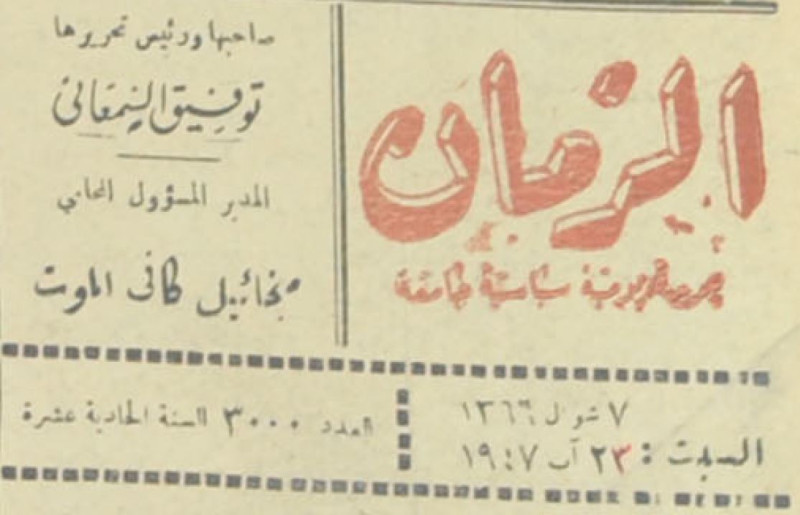 صاحبها ومدير تحريرها : توفيق السمعاني.