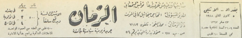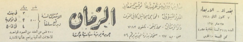 صاحبها ومدير تحريرها : توفيق السمعاني.