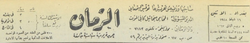 صاحبها ومدير تحريرها : توفيق السمعاني.