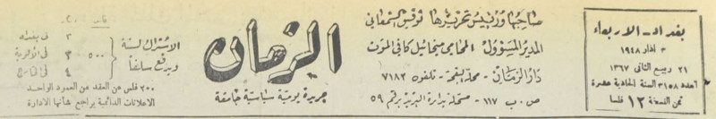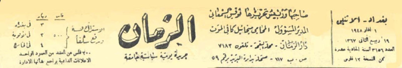 صاحبها ومدير تحريرها : توفيق السمعاني.