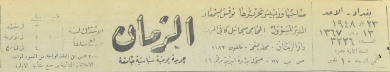 الزمان (جريدة : بغداد، العراق : 1937)