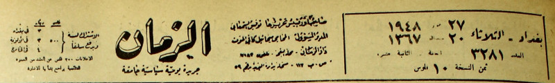 الزمان (جريدة : بغداد، العراق : 1937)