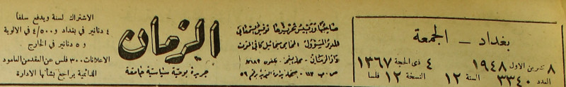 الزمان (جريدة : بغداد، العراق : 1937)