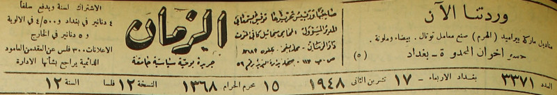 الزمان (جريدة : بغداد، العراق : 1937)