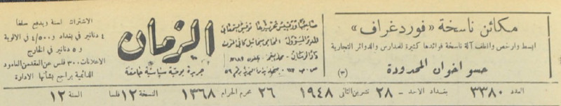 صاحبها ومدير تحريرها : توفيق السمعاني.