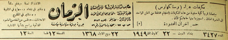 الزمان (جريدة : بغداد، العراق : 1937)