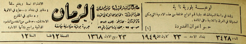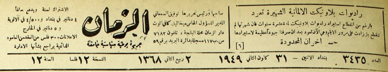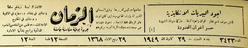 صاحبها ومدير تحريرها : توفيق السمعاني.