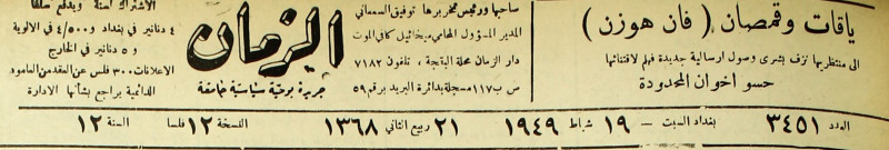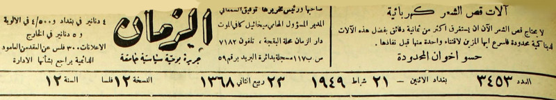 صاحبها ومدير تحريرها : توفيق السمعاني.