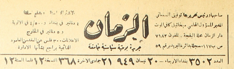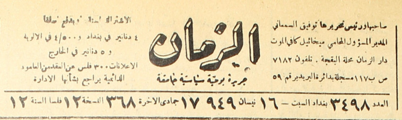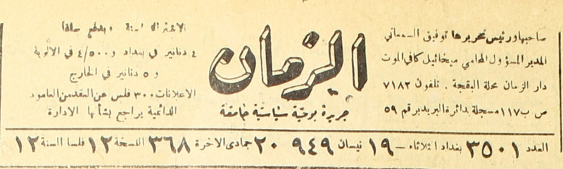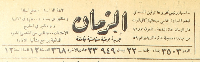 صاحبها ومدير تحريرها : توفيق السمعاني.