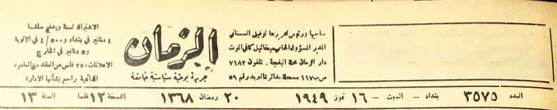 صاحبها ومدير تحريرها : توفيق السمعاني.