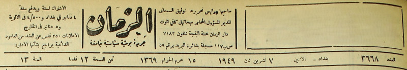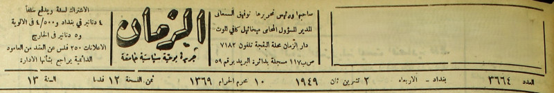 الزمان (جريدة : بغداد، العراق : 1937)