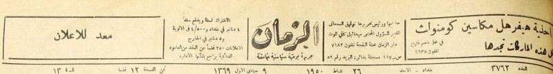 صاحبها ومدير تحريرها : توفيق السمعاني.