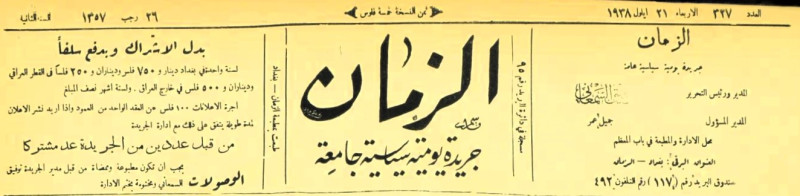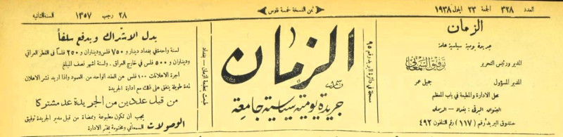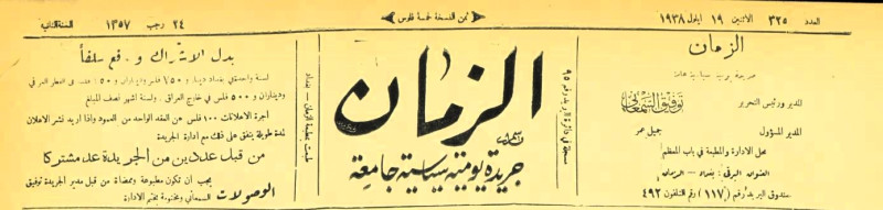 صاحبها ومدير تحريرها : توفيق السمعاني.