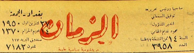 صاحبها ومدير تحريرها : توفيق السمعاني.